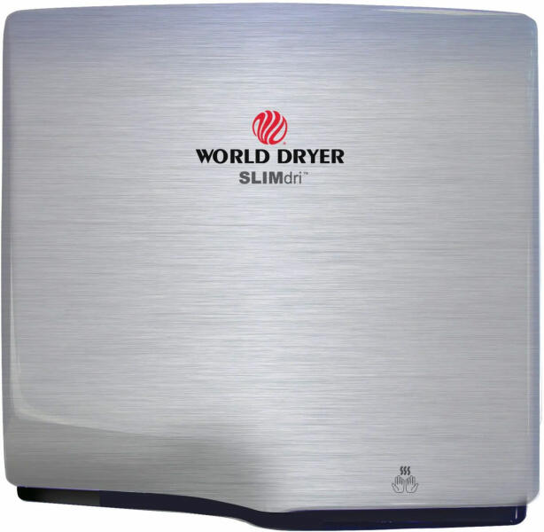 World Dryer SLIMdri automata kézszárító: Gyors, higiénikus és elegáns kézszárítás ? Ez a prémium minőségű automata kézszárító rozsdamentes acélból és selyemfényű bevonattal készült, így stílusos és tartós megoldást kínál a mosdókba. A 950 W-os teljesítmény garantálja a gyors (10-12 másodperc) kézszárítást, miközben a csendes (83 dB) működés kellemes környezetet biztosít. Főbb jellemzők:Rozsdamentes acél selyemfényű burkolat: Elegáns megjelenés és hosszú élettartam ✨ 950 W teljesítmény: Gyors és hatékony kézszárítás ? 10-12 másodperces szárítási idő: Időmegtakarítás és hatékonyság ⏱️ Infravörös szenzor: Érintésmentes működés a higiénia érdekében ?️ 83 dB zajszint: Csendes és kellemes működés ? Könnyen tisztítható felület: Higiénikus és karbantartásbarát ? Előnyök:Higiénikus: Érintésmentes működés csökkenti a baktériumok terjedését. Időtakarékos: A gyors szárítás értékes perceket takarít meg. Energiatakarékos: Hatékony működés alacsony energiafogyasztással. Elegáns design: Modern és stílusos megjelenés bármely mosdóba. Tartós: Kiváló minőségű anyagok garantálják a hosszú élettartamot. A World Dryer SLIMdri automata kézszárító tökéletes választás minden olyan helyiségbe, ahol fontos a higiénia, a gyorsaság és a stílusos megjelenés.